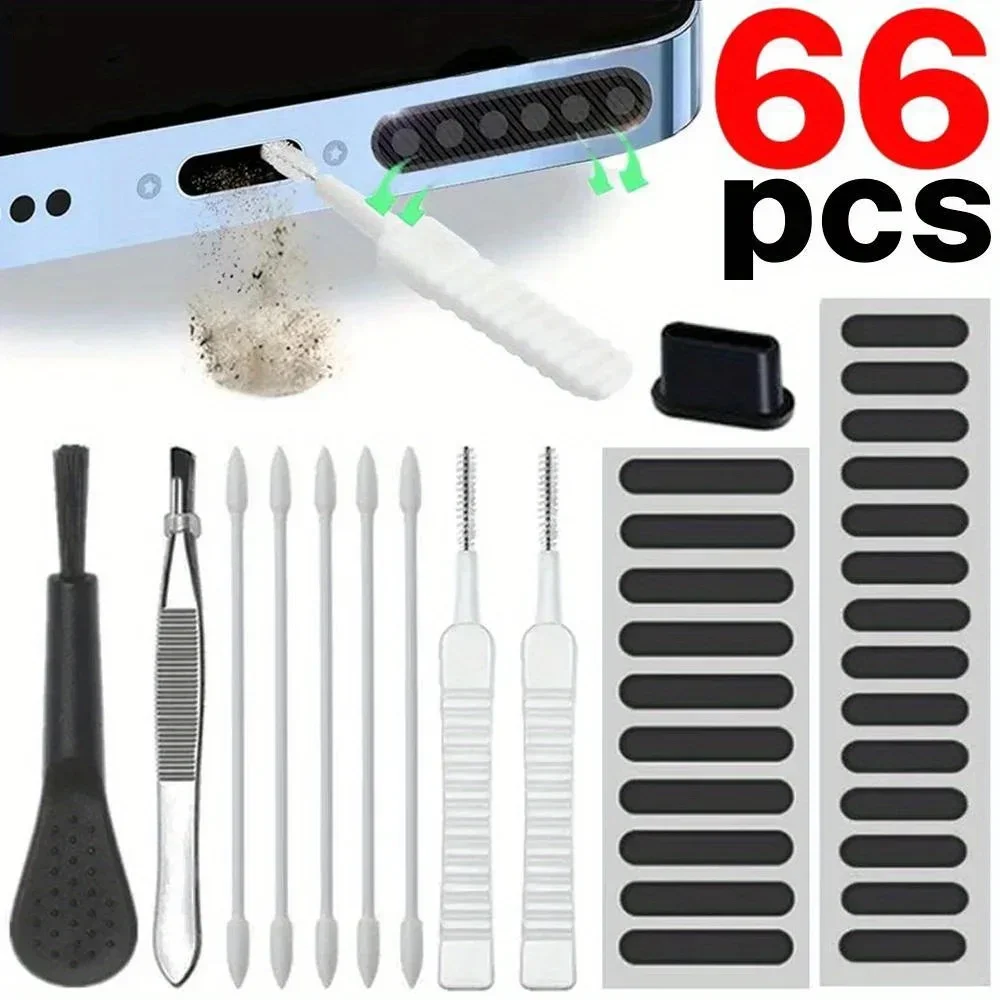 66pcs Universal Dust Removal Cleaner Tool Kit cell Phone Charging Port Speaker Covers for Keyboard Laptop AirPods MacBook Earbud
