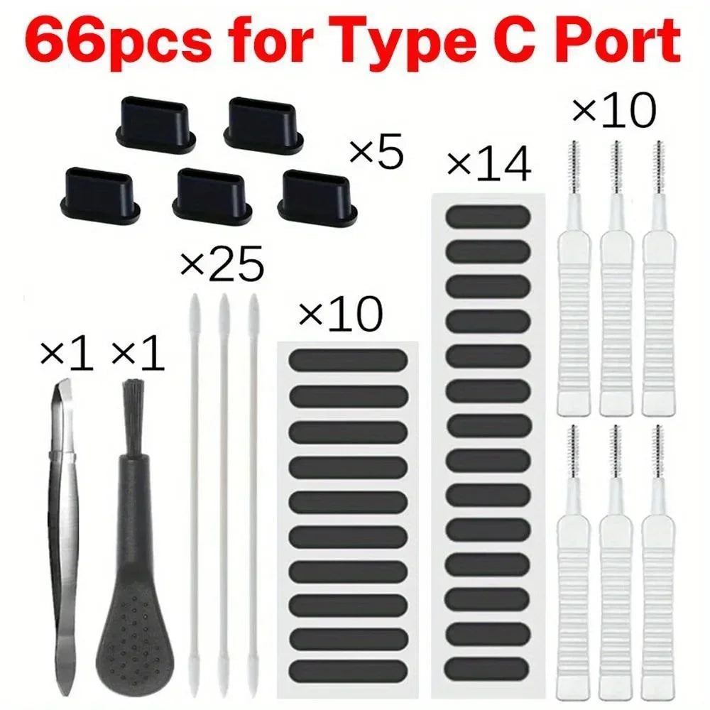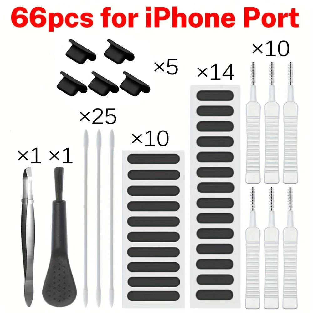 66-Piece Mobile Phone Speaker Cleaning Tool Set: This set features 66 various tools designed to assist in cleaning your mobile phone's speakers and charging port effortlessly. Dust Cleaning Tool Set: The set contains tools that aid in eliminating dust from your mobile phone's speakers and charging port, promoting improved sound quality and extending the device's lifespan. Note: For iPhone 16/15 systems, a Type C port is required.